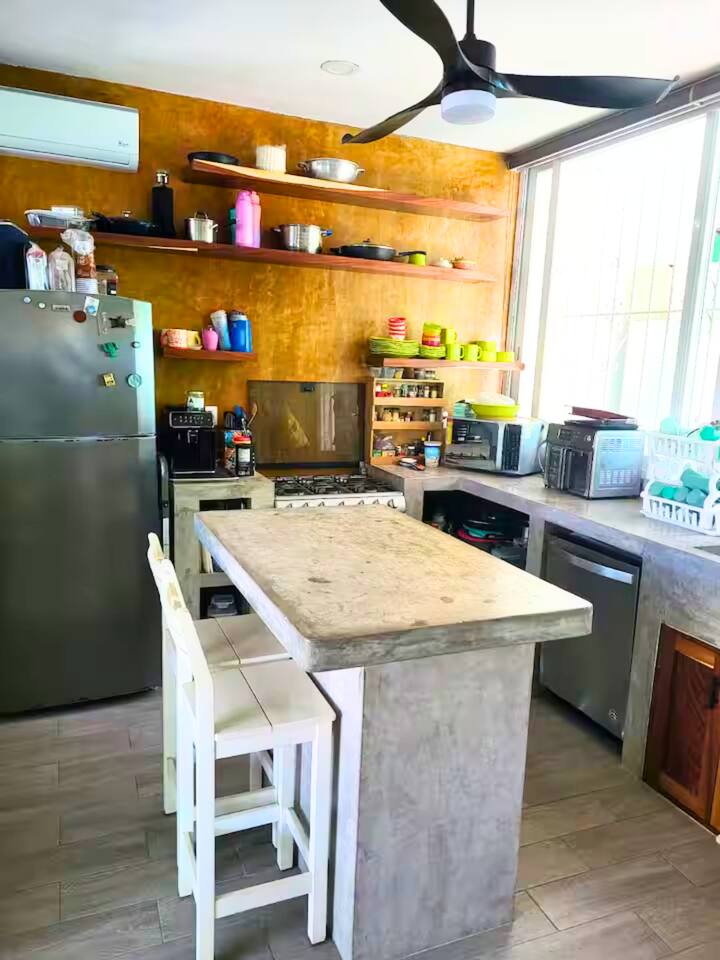 Entorno geográfico Casa Principale se encuentra en el barrio El Centro de Puerto Escondido, una zona animada y auténtica cerca de todo. Desde aquí puedes caminar a Playa Zicatela en diez minutos, llegar al supermercado Chedraui en dos minutos y explorar otras playas como Carrizalillo, Manzanillo y Bacocho en un corto trayecto en coche o taxi. El vecindario es seguro, caminable y está conectado con todas las atracciones principales. Descripción de la casa Esta casa privada de dos pisos ofrece una estancia cómoda para hasta cuatro personas. Incluye dos recámaras, un baño completo y un medio baño, una amplia sala, comedor y cocina totalmente equipada con asador. Un gran balcón tiene vista a la Playa Zicatela y la alberca y el exuberante jardín compartidos brindan un ambiente tropical. Aire acondicionado, ventiladores de techo y WiFi confiable aseguran comodidad tanto para el descanso como para el trabajo remoto. Servicios cercanos Los huéspedes pueden acceder fácilmente a supermercados, cafeterías locales, mercados tradicionales, estudios de yoga, escuelas de surf y la vibrante vida nocturna de Puerto Escondido. Ya sea que quieras ir de compras, surfear o descubrir la gastronomía local, todo está a distancia a pie o a un corto trayecto en taxi. Detalles de transporte Caminar es la forma más fácil de explorar El Centro. Hay taxis y colectivos económicos disponibles fácilmente, y la terminal de autobuses está a solo cinco minutos. El Aeropuerto Internacional de Puerto Escondido está a diez minutos en taxi, y hay estacionamiento gratuito en la calle para quienes lleguen en auto. Características principales Dos recámaras y un baño completo más un medio baño Gran balcón con vistas a Playa Zicatela Alberca y jardín tropical compartidos Sala de masajes en la azotea disponible por un costo adicional Cocina totalmente equipada con asador Aire acondicionado y ventiladores de techo WiFi confiable y espacio apto para trabajar Ubicación céntrica a poca distancia de tiendas, restaurantes y playas