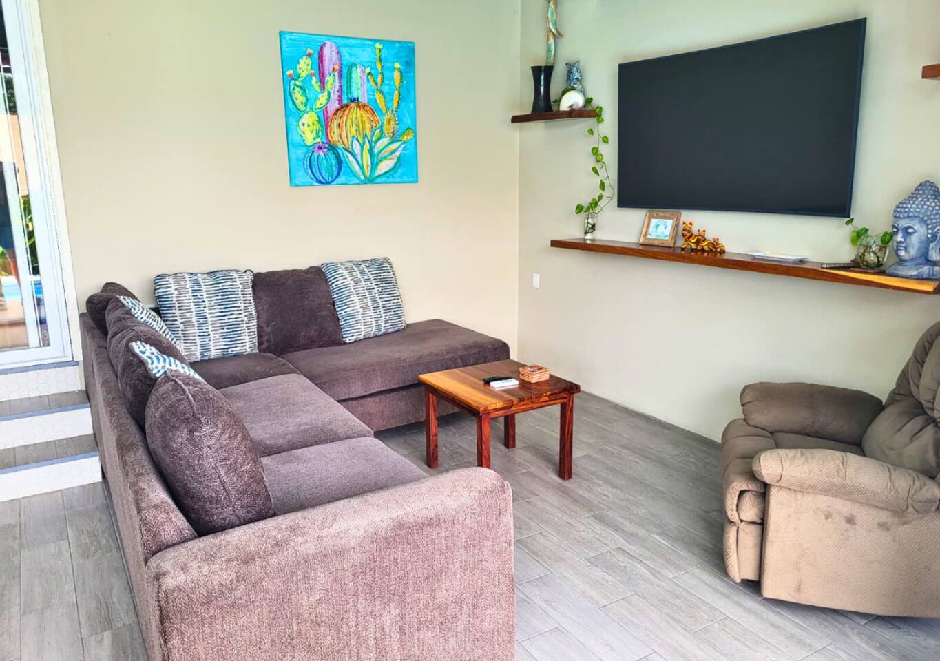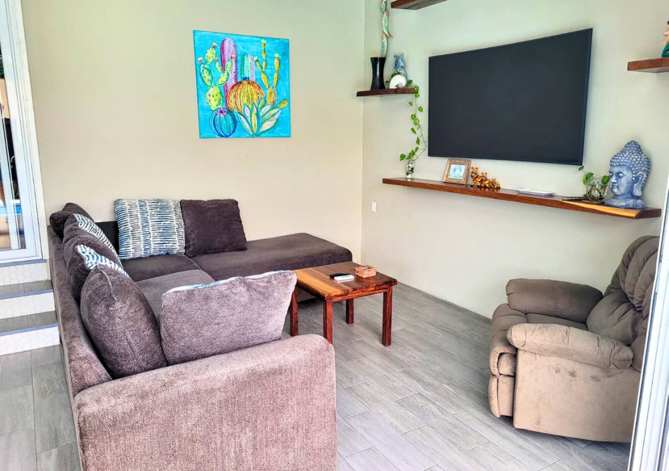 Los huéspedes de Casa Principale disfrutan de la comodidad y privacidad de una casa completa de dos pisos, incluyendo sala, comedor, cocina con asador, dos recámaras, un baño completo y un medio baño, y un amplio balcón con vistas a Playa Zicatela. Además, los huéspedes tienen acceso al jardín tropical y alberca compartidos, que solo comparten con los tres estudios de Casa Cactus. Para mayor relajación, hay una sala de masajes en la azotea con vistas panorámicas disponible por un pequeño costo adicional.